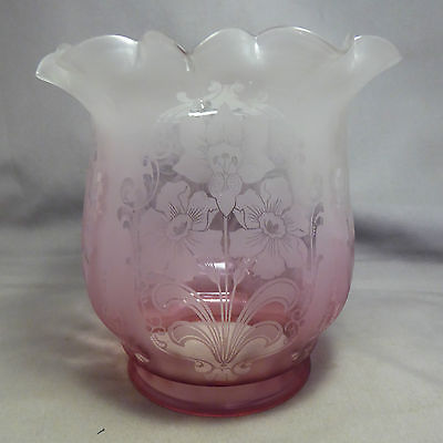 Antique Cranberry Glass Etched Art Nouveau Floral Lamp Shade Victorian Edwardian