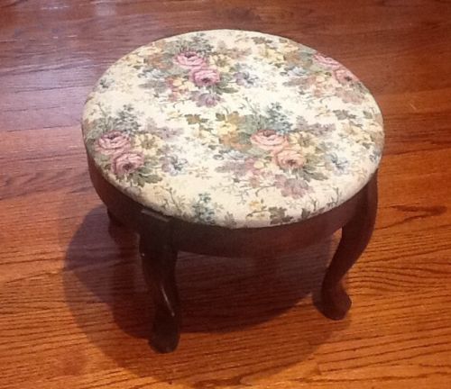 Title (ebay affiliate link): Vintage Round Cherry Wood Footstool With Beautiful Floral Tapestry Upholstery!