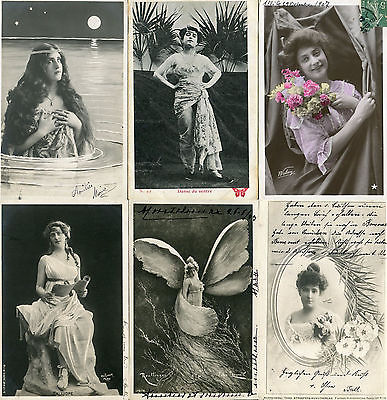 Lot of 6 Vintage French Ladies postcards - L023 - 5 DAY AUCTION!