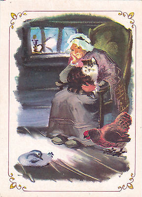1980 VERY RARE Granny with cat hen duck by Kanevsky old Russian Soviet postcard