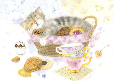 RARE Cat sleeping among the cookies tea-time Moiseenko Russian modern postcard