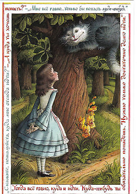 2012 Alice in Wonderland with Cheshire cat by Bazanova Russian modern postcard