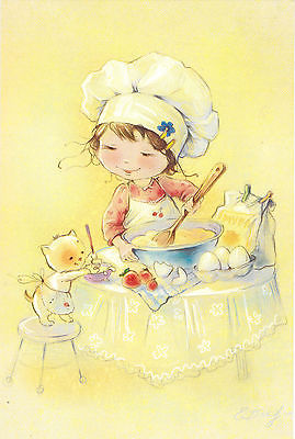 VERY RARE Little Cookers Girl with cat by Babok Russian modern postcard