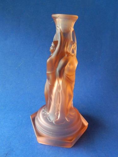 Title (ebay affiliate link): Art Deco Frosted Pink Glass 3 Maidens Candlestick Centrepiece Walther & Sohne