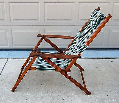Title (ebay affiliate link): Vtg Wood Adjustable Folding Deck Chair Canvas Beach Pool Ship Lounge RESTORED