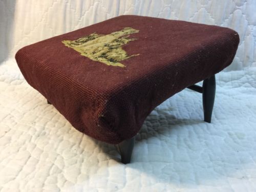 Title (ebay affiliate link): Antique Wooden Gout Foot Stool Arts & Crafts Shaker My Lebanon NY w Terrier Dogs