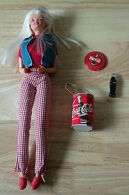 Title (ebay affiliate link): Coca Cola Barbie with bag, frisbee, and Cola Bottle Red White Gingham