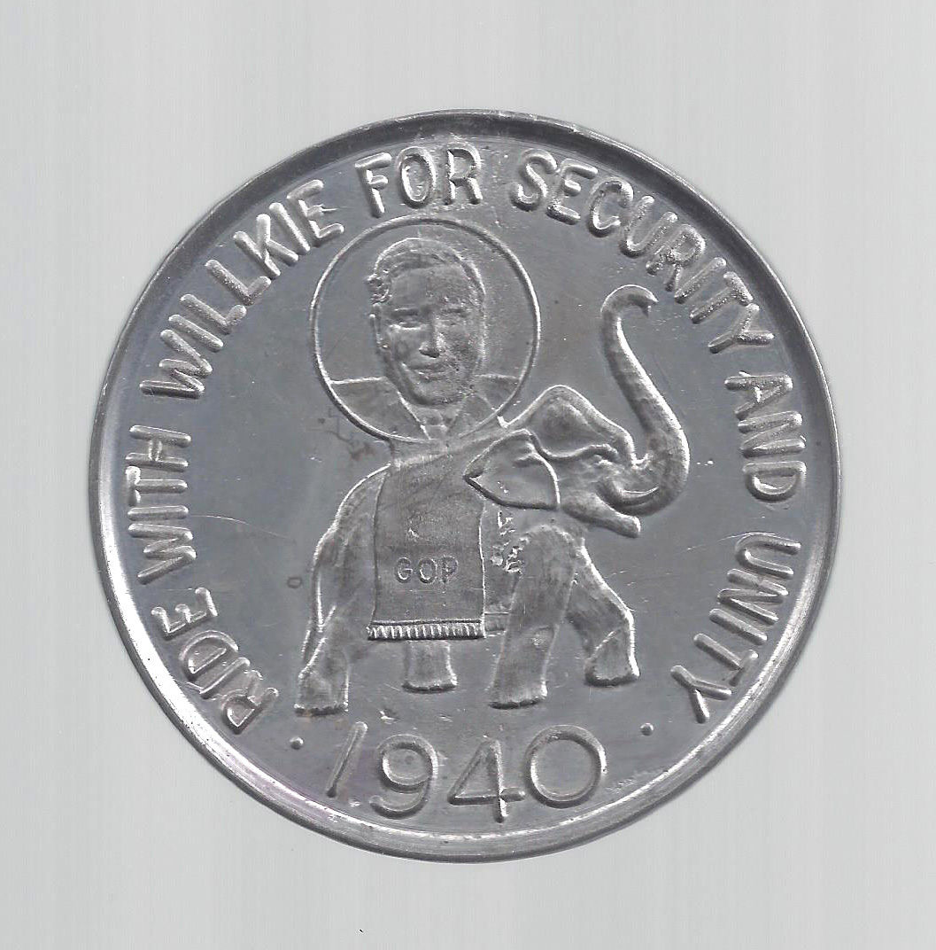 Title (ebay affiliate link): 1940 RIDE WITH WILLKIE FOR SECURITY AND UNITY HEAVY METAL GIANT TOKEN
