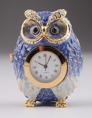 Title (ebay affiliate link): Owl w/clock trinket box by Keren Kopal with Austrian Crystal Jewelry Faberge