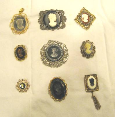 Title (ebay affiliate link): Collectible Vintage & Antique Costume Cameos - 9 in all