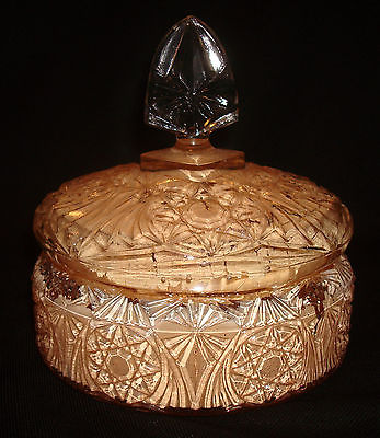 Vintage LE Smith Depression Glass ARROWHEAD Hobstar Powder Box Vanity Jar