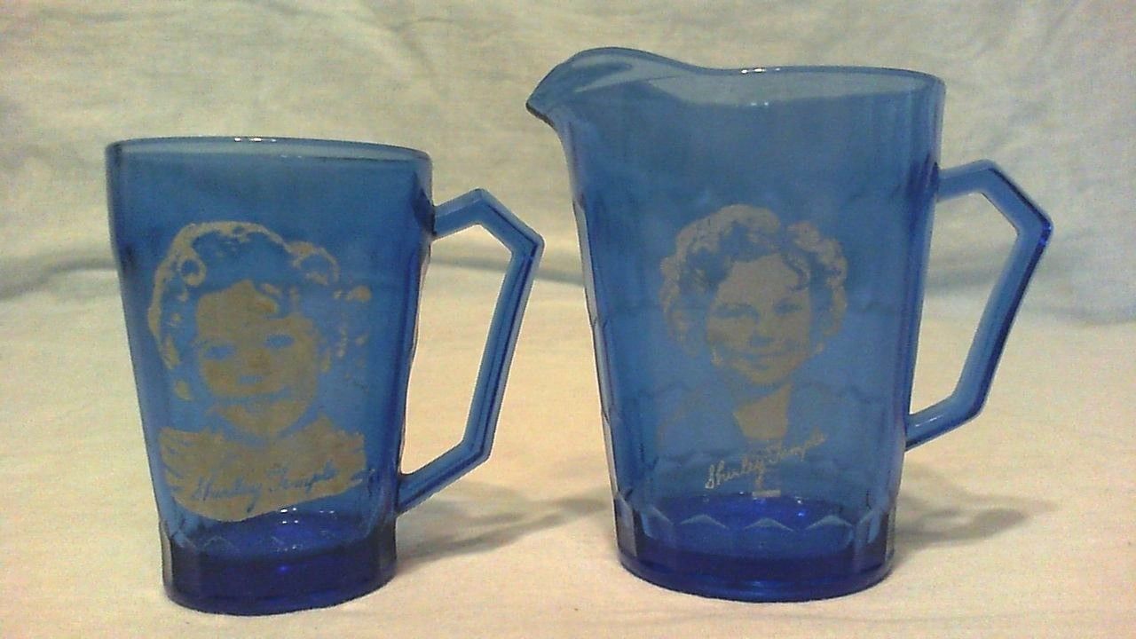 Title (ebay affiliate link): VINTAGE SHIRLEY TEMPLE COBALT GLASS MUG & PITCHER MINT