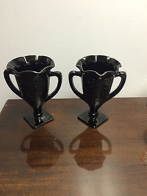 Title (ebay affiliate link): LE Smith Pair of Black Amethyst Dancing Nymphs Trophy Vases with Handle