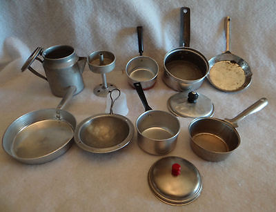 Vtg. Child's Toy Dishs Lot Metal Aluminum Play Kitchen Cookware Pots Pans 10 Pcs