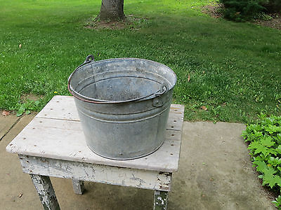 Vintage Galvanized 4 Gallon Bucket / Wash Tub - Heavy Very Old