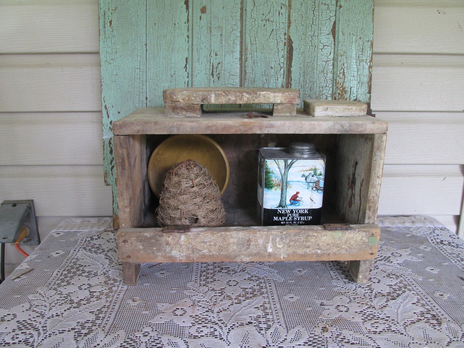 Title (ebay affiliate link): ANTIQUE VINTAGE SHOESHINE CARRIER MADE INTO CUPBOARD WITH OLD ITEMS