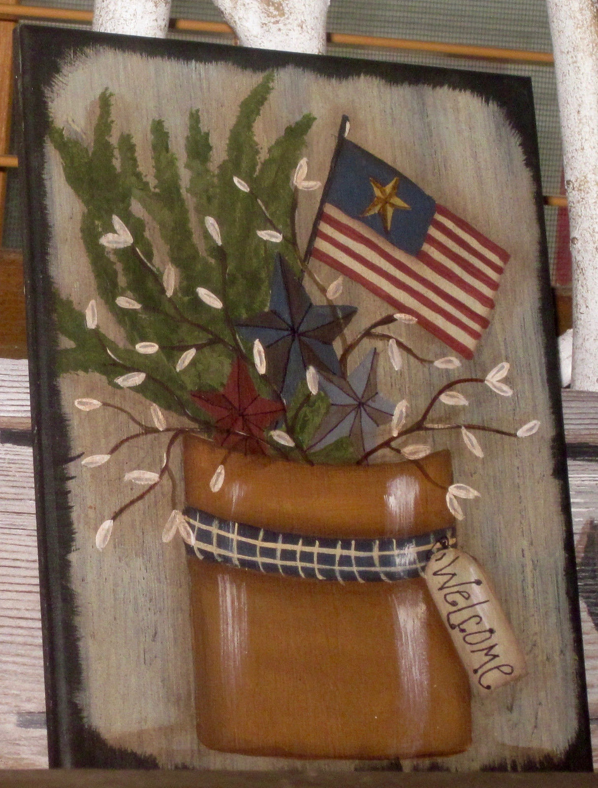 Title (ebay affiliate link): *~*PRIMITIVE*~* HP FOLK ART PRIM CROCK*STAR *FLAG *BERRIES *AMERICANA *~* BOARD