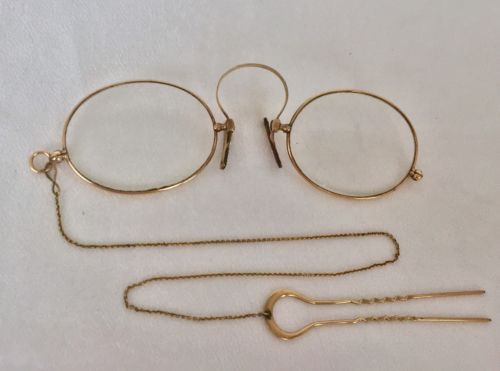 Title (ebay affiliate link): Antique GOLD Tone / Filled PINCE NEZ SPR. Bridge Spectacles w/ Hairpin Chain