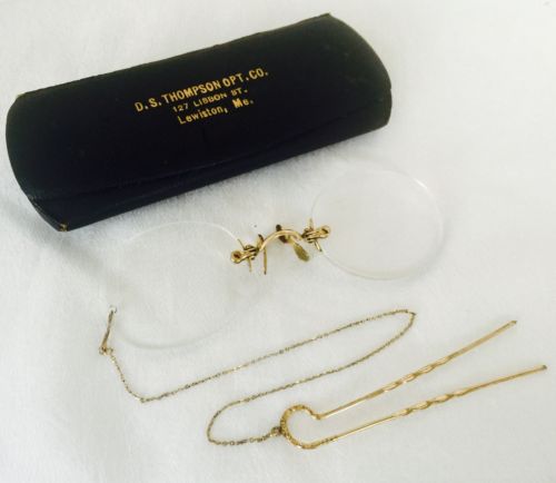 Title (ebay affiliate link): Antique Gold Filled Pince Nez EVERTITE Eyeglasses with Hair Pin Chain and Case