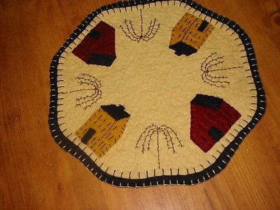 Title (ebay affiliate link): Primitive Candle Mat - Woolfelt Saltbox Houses w/willow trees 9"