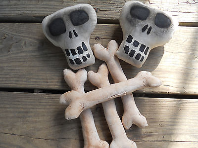 Primitive Grungy Halloween Skull & Crossbone Ornies Bowl Filler Decor Set of 6