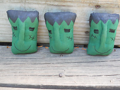 Primitive Grungy Halloween Frankenstein Ornies Bowl Fillers Decor Set Of 3