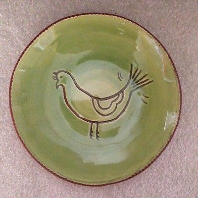 Title (ebay affiliate link): Vintage Dorothy Long Penna Dutch Folk Art - Chicken Decorated Redware Plate 1987