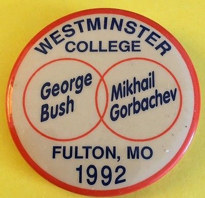 Title (ebay affiliate link): 1992 Fulton, MO Westminster College George Bush/Mikhail Gorbachev Pinback Button