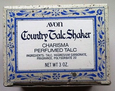 Title (ebay affiliate link): Vintage Avon Country Talc Shaker Charisma Perfumed Talc 3oz