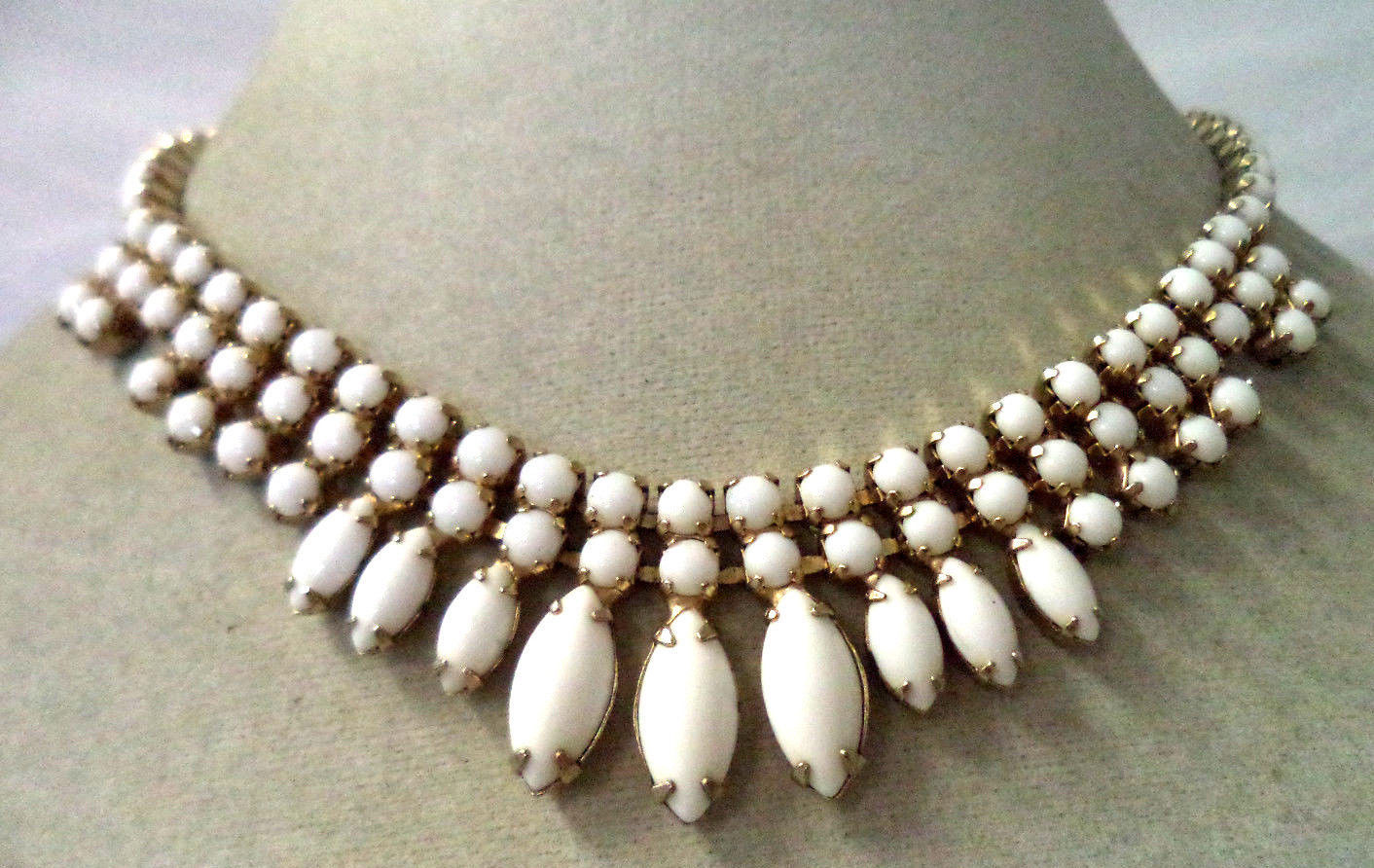 Title (ebay affiliate link): STUNNING VINTAGE ESTATE HIGH END MILK GLASS RHINESTONE GOLD TONE NECKLACE! G2548