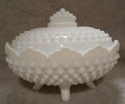 Title (ebay affiliate link): Vintage 1970s Fenton Hobnail White Milk Glass Oval 4 Footed Covered Candy Dish
