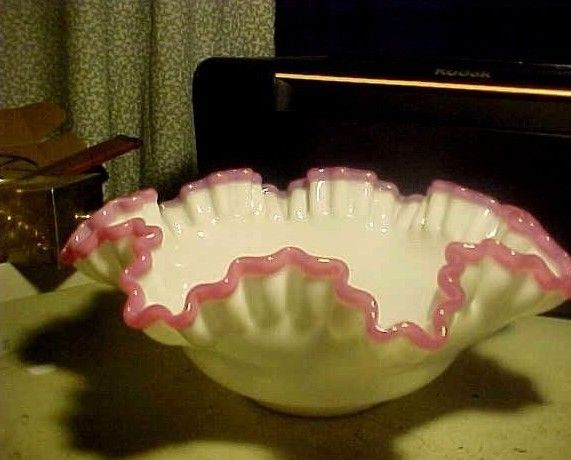 Title (ebay affiliate link): Vintage 10 1/2" Fenton Apple Blossom Crest Milk Glass Centerpiece Serving Bowl