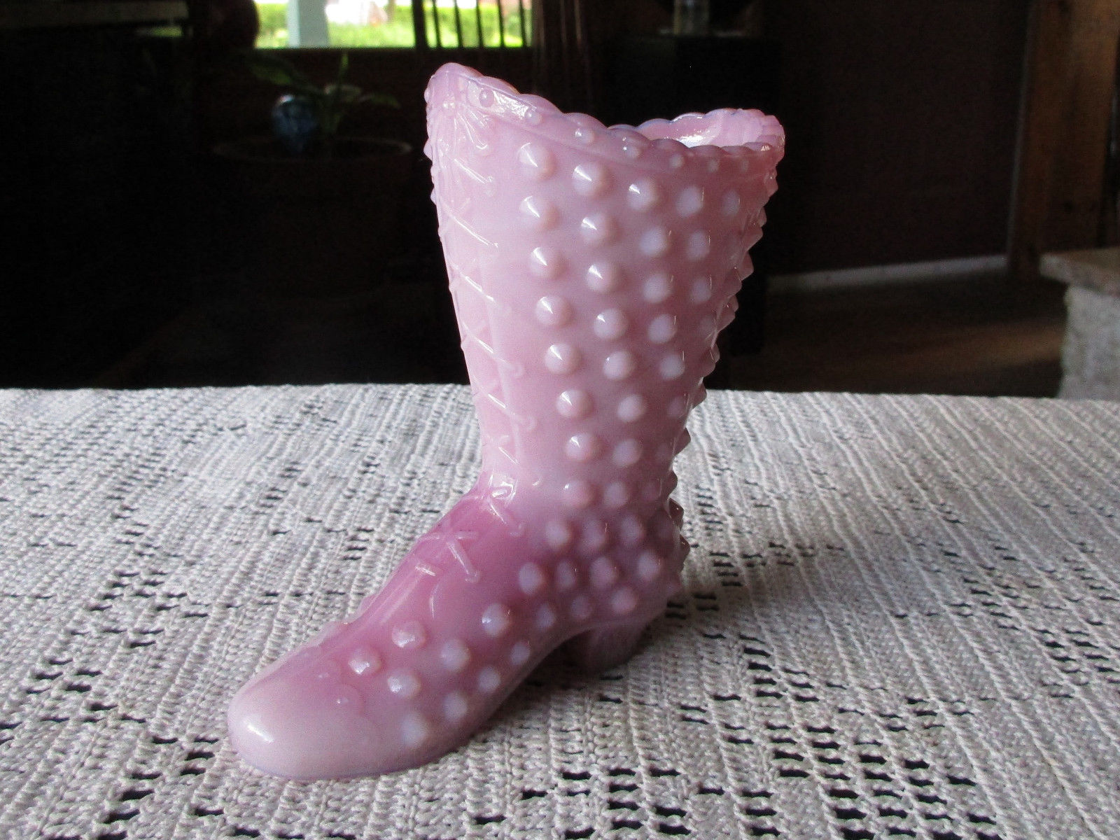 Vintage Fenton Hobnail Pink Milk Glass Shoe Boot
