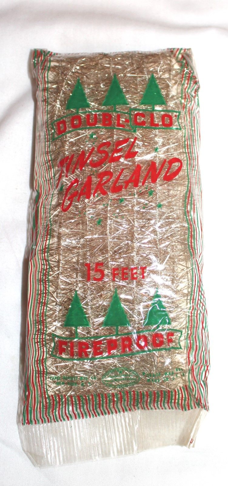 Title (ebay affiliate link): 3rd Early 1930s Silver Tinsel Garland. DOUBLE-GLO. 15 ft. great patina. U.S.A.
