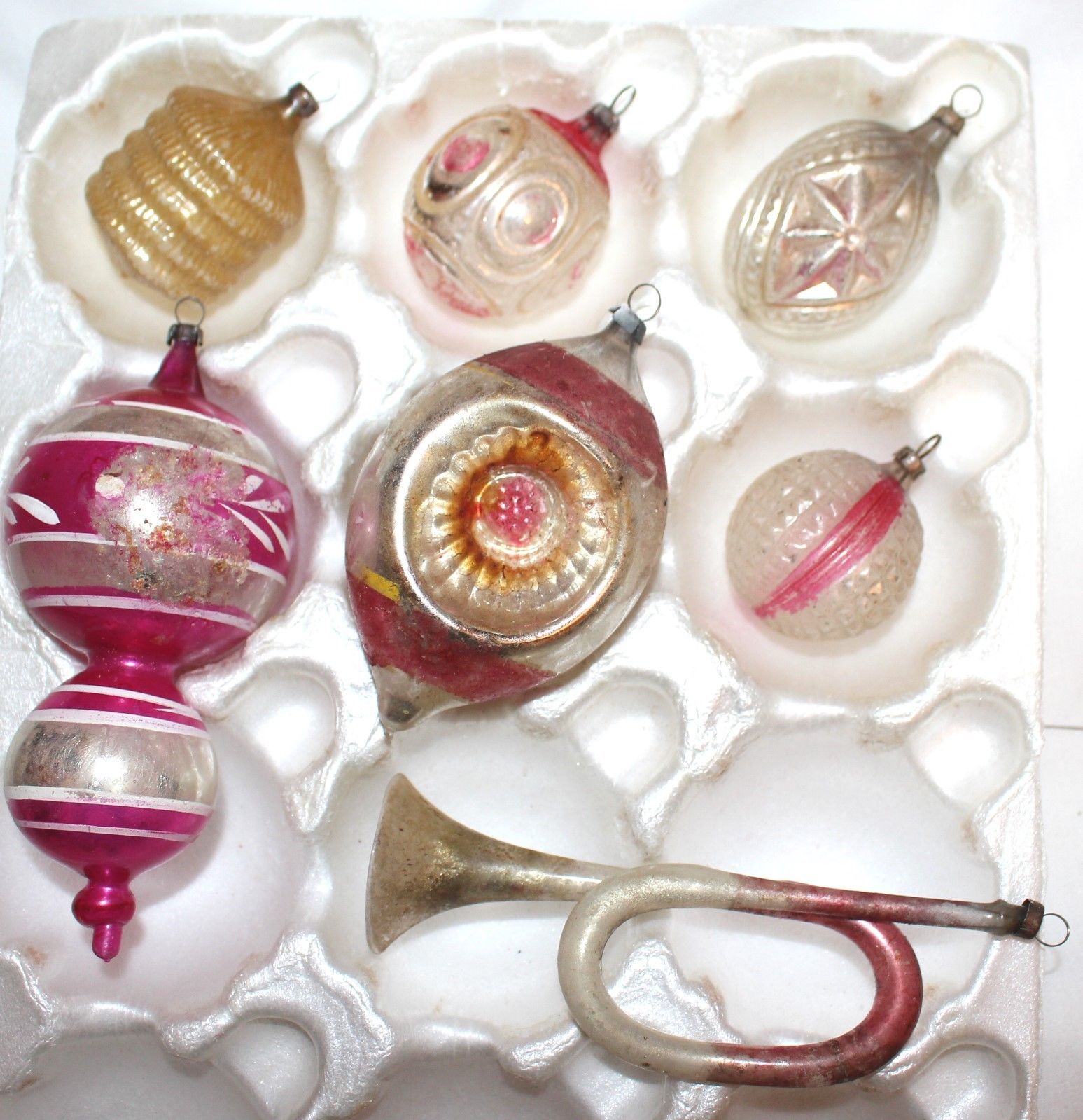Title (ebay affiliate link): Seven, assorted German Glass German Christmas Ornaments. 1900s. Silvering is bad
