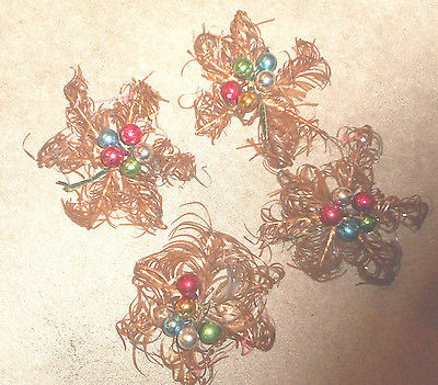 4 Antique Japan 6 Arm Star Feathery & Glass Ball Ornaments 8"
