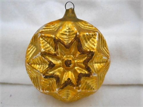 Title (ebay affiliate link): VINTAGE PAPER THIN GLASS GOLD STAR INDENT ORNAMENT DARK MICA ACCENTS ~ GERMANY