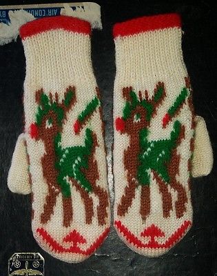 Title (ebay affiliate link): CHILD'S ANTIQUE WINTER WOOL RUDOLPH RED NOSED REINDEER MITTENS
