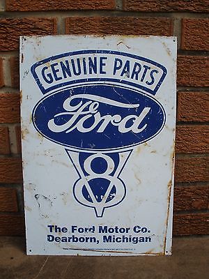 TIN SIGN FORD V8 SIGN METAL SIGNS GENUINE PARTS DEARBORN MICHIGAN