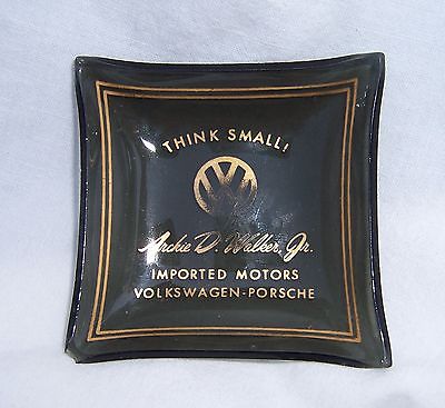 VTG 1960s VOLKSWAGEN PORSCHE Imported Motors Dealer THINK SMALL glass ash tray