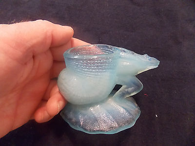 vintage blue depression glass frog and shell toothpick holder ribbit lilypad