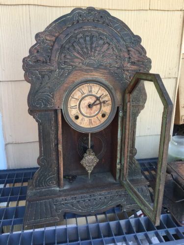 Title (ebay affiliate link): OLD ANTIQUE SESSIONS GINGERBREAD LG SHELF MANTLE CLOCK FOR PARTS