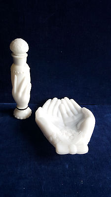 2 pieces Avon milk glass large hand dish and bottle