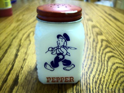 VINTAGE MILK GLASS DUTCH BOY PEPPER SHAKER