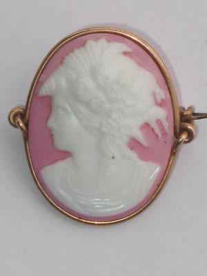 Vintage Pink milk Glass detailed Cameo Pin Brooch