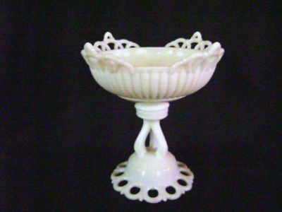 WESTMORELAND MILK GLASS COMPOTE LACE EDGE DECOR - DORIC