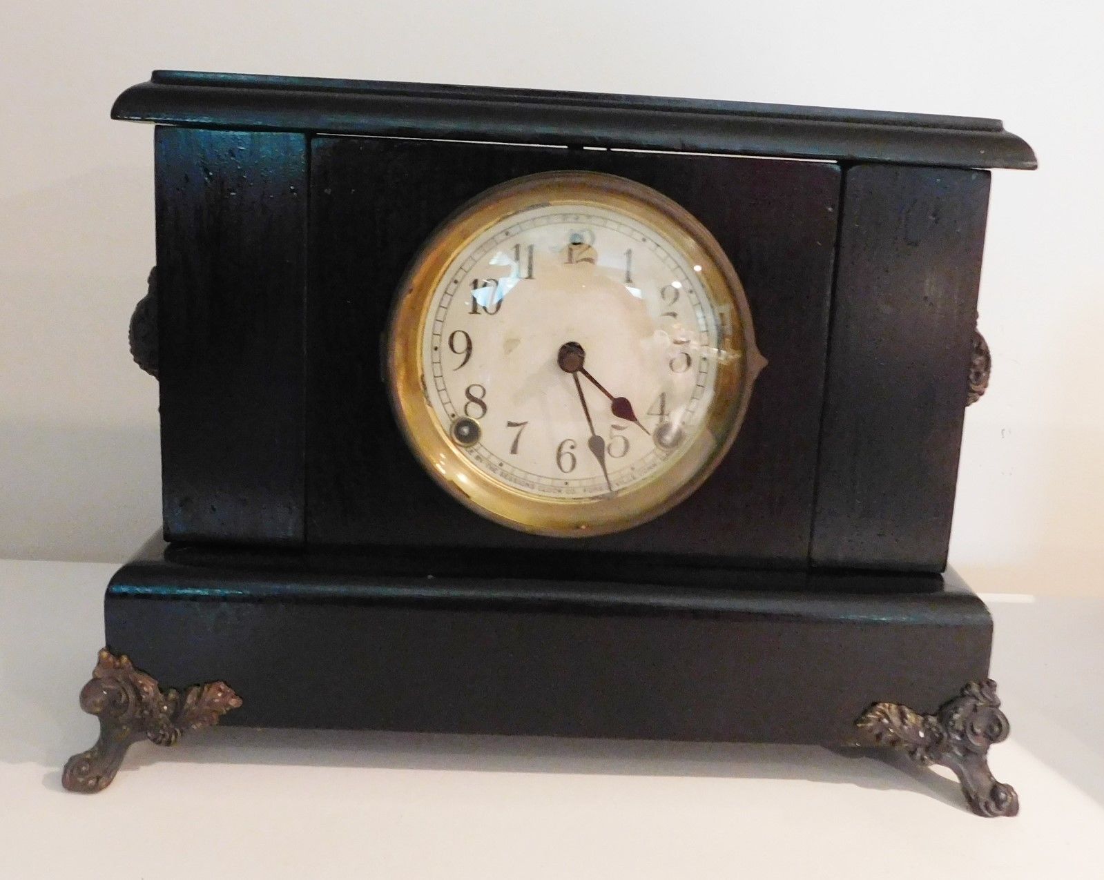 Title (ebay affiliate link): Antique Sessions Ebony 8 Day Key Wind Mantle Clock Working Fine