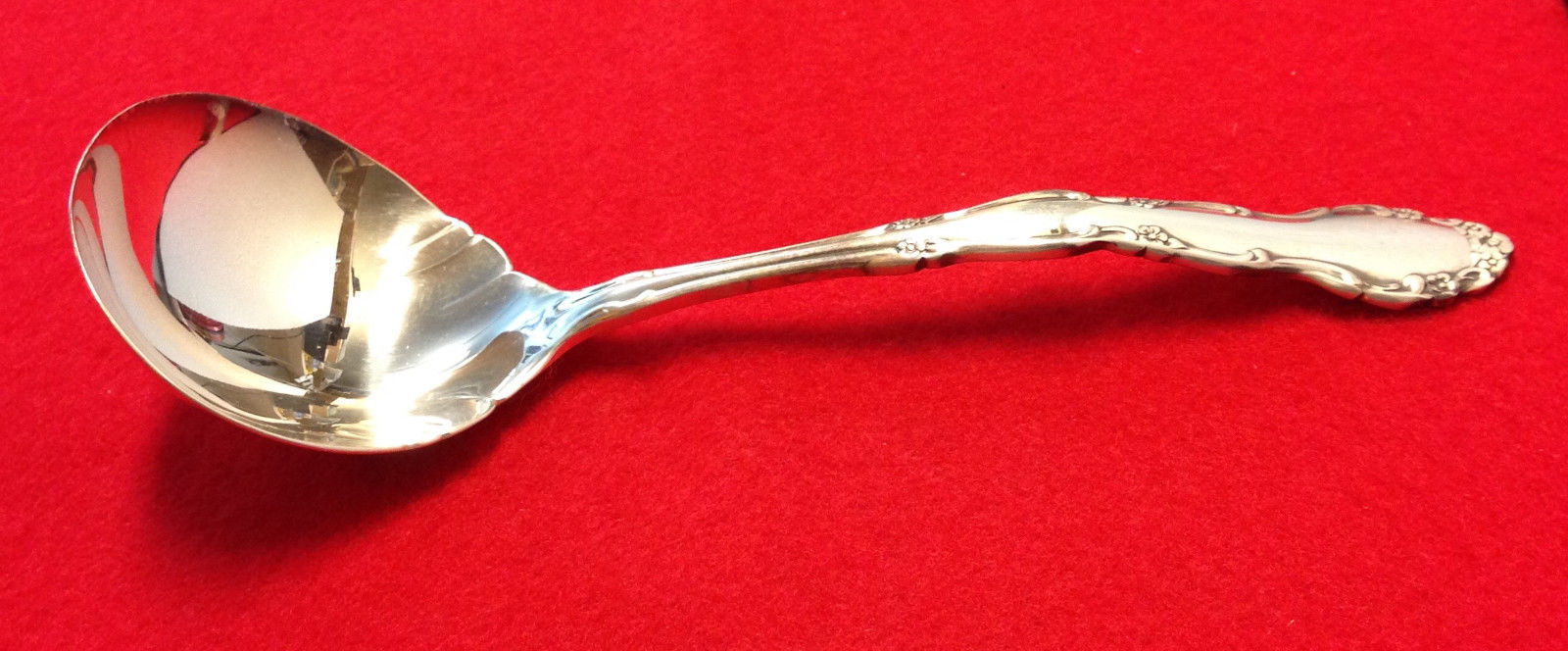 1881 Rogers Silver Plate. SOLID GRAVY LADLE 1959 Flirtation Pattern. 7-1/2"
