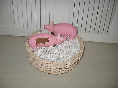 Handmade Primitive Bowl Fillers/Ornies Pink Pigs Set of 2