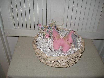Handmade Primitive Bowl Fillers/Ornies Pink Butterflies Set of 2
